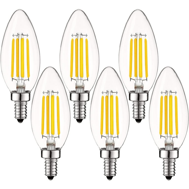 Luxrite 4w E12 Vintage Candelabra Dimmable Led Light Bulbs 40w Equivalent 400 Lumens 3000k Soft White Flame Tip 6 Pack Walmart Com